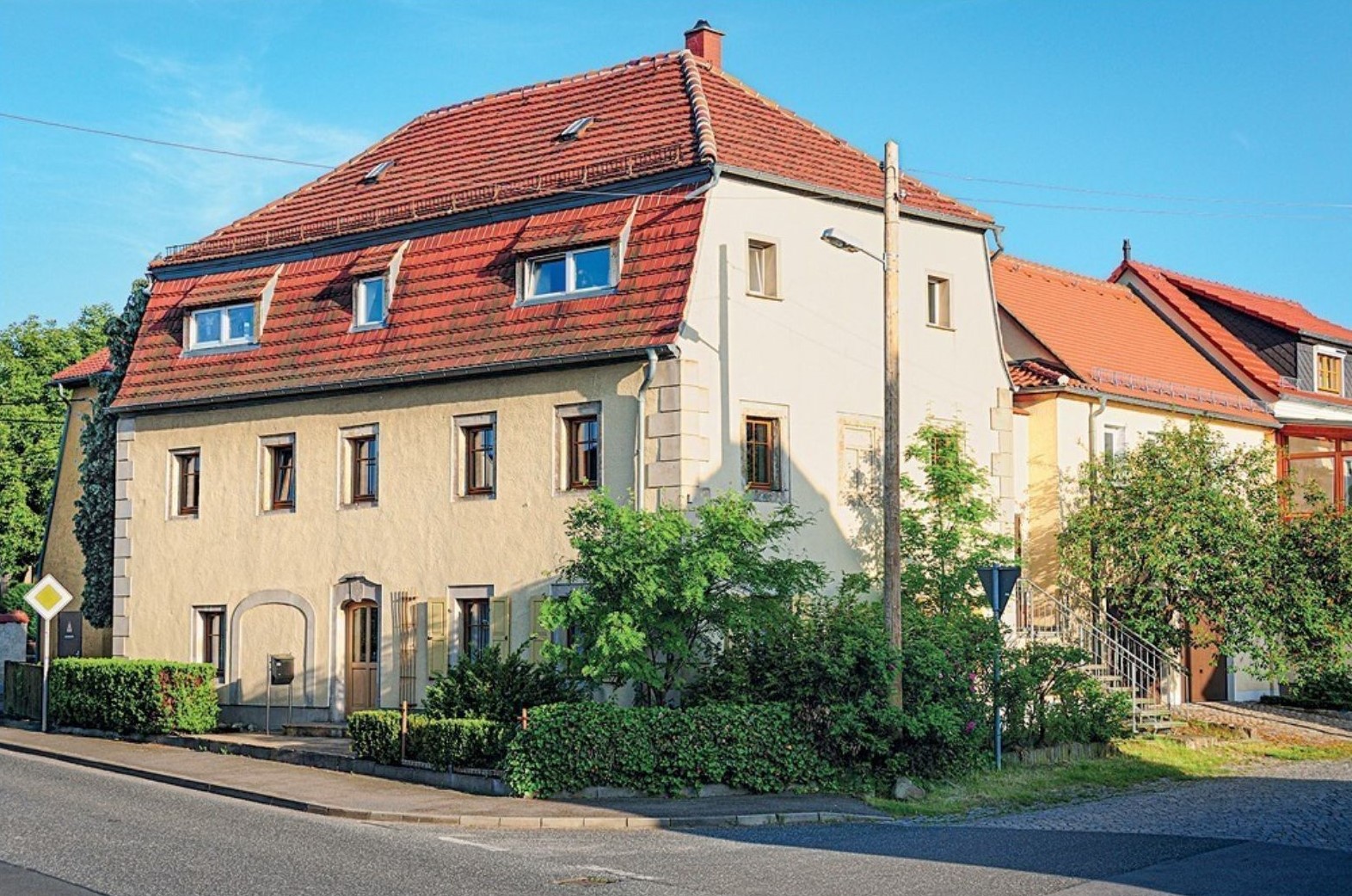 Den Abschluss unserer Dorfrunde bildet das 1812 auf dem Anger im Stil des Spätbarocks errichtete Gebäude der „Alten Schmiede“. Die Schmiedewerkstatt befand sich bis Mitte 1960 im Erdgeschoss linksseitig. Rechterhand gab es bis 1919 eine Stelle der kaiserlichen Reichspost, danach eine Sattlerei. In den neunziger Jahren wurde das Gebäude von einer Familie erworben und entsprechend heutiger Bedürfnisse zu Wohnzwecken umgebaut.